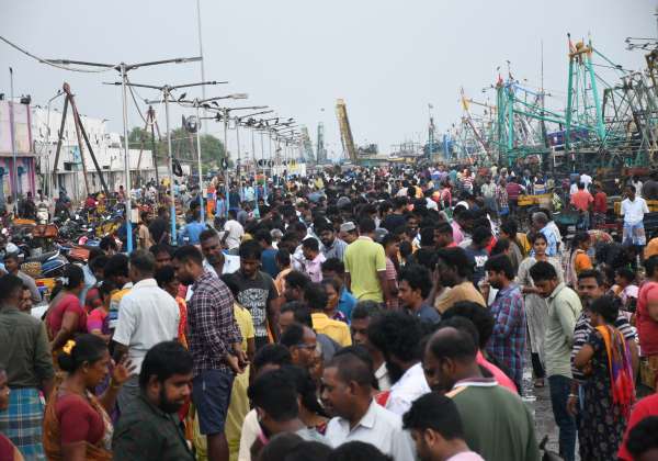 விடுமுறை தினத்தையொட்டி சென்னை காசிமேடு மீன்பிடி துறைமுகத்தில் மீனவர்கள் வாங்க குவிந்த மக்கள் கூட்டம்.