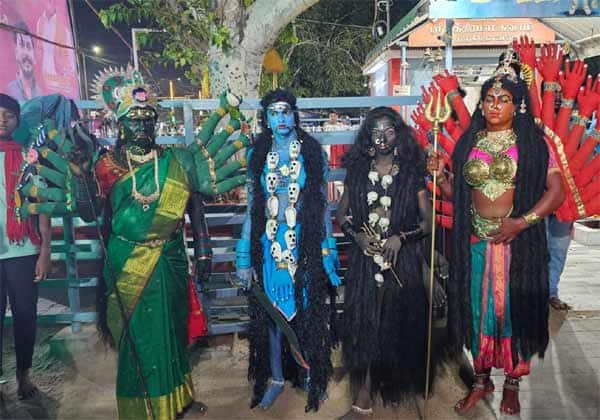 தூத்துக்குடியில் காளி ஊர்வலம்: தூத்துக்குடியில் தசரா திருவிழாவை ஒட்டி முத்தாரம்மன் பக்தர்களை ஒன்று சேர்க்கும் விதமாக வேம்படி இசக்கியம்மன் கோவிலில் இருந்து மாபெரும் காளி ஊர்வலம் நடந்தது. 108 பெண்கள் ஊர்வலத்திற்கு பின் விளக்கேற்றி வந்தனர்.