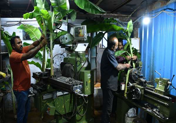 ஆயுத பூஜை சரஸ்வதி பூஜை கொண்டாட தயாராகும் தொழிற்சாலைகள். இடம்: கோவை குறிச்சி சிட்கோ தொழில்பேட்டை.