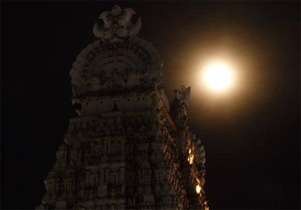பௌர்ணமி நிலவு வெளிச்சத்தில் ஜொலிக்கும் திருவண்ணாமலை அருணாசலேஸ்வரர் கோவில் திருமஞ்சன கோபுரம்