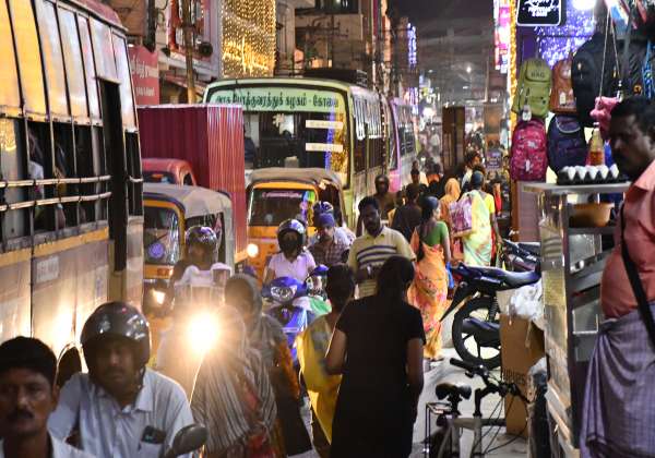 திருப்பூர், புது மார்க்கெட் வீதியில் தீபாவளி பண்டிகை பொருட்கள் வாங்குவதற்கு கூட்டமாக இருந்தது.
