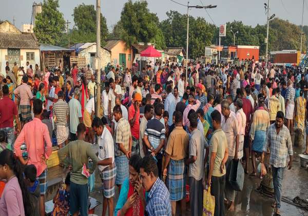 ஞாயிற்றுக்கிழமையொட்டி அசைவ பிரியர்கள் மீன் வாங்க குவிந்தனர். இடம் கடலூர் முதுநகர் மீன்பிடி துறைமுகம்.