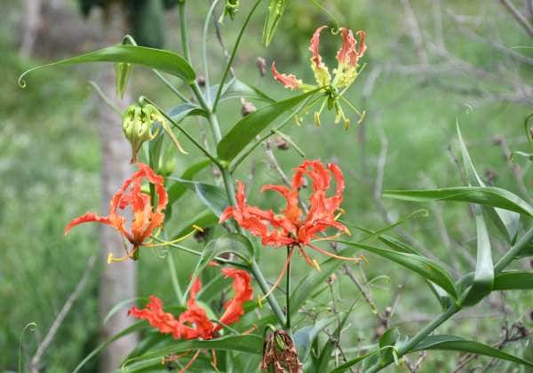 உடுமலை சின்னவீரம்பட்டியில் செங்காந்த மலர் செடிகளில் பூத்துள்ள பூக்கள்.