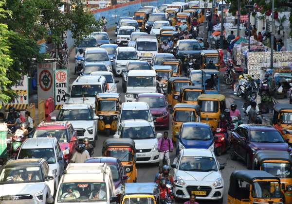 தீபாவளி பண்டிகை வருவதை முன்னிட்டு தி.நகர் பகுதிக்கு பொருட்களை வாங்க வந்த மக்கள் கூட்டத்தால் தி.நகர் ராமேஸ்வரராவ் சாலையில் ஏற்பட்ட போக்குவரத்து நெரிசல்.