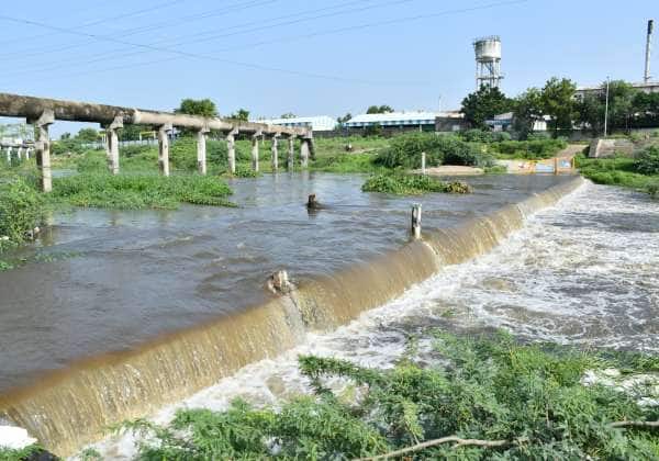 திருப்பூர், அணைப்பாளையம் நொய்யல் ஆறு தரைப்பாலம் வெள்ளப்பெருக்கு ஏற்பட்டு மூழ்கியது.