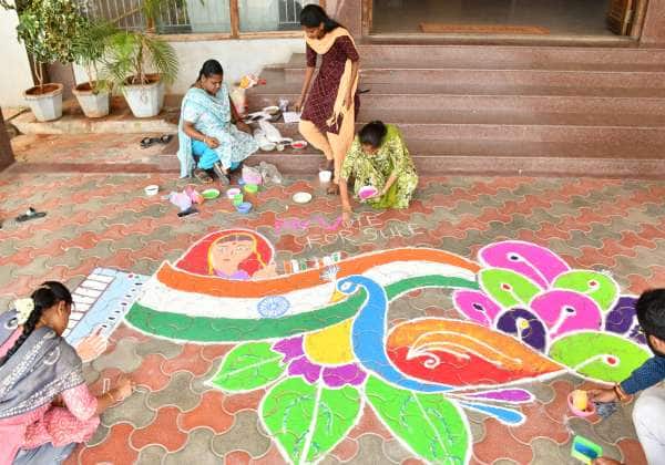 திருப்பூர், மாநகராட்சி அலுவலகத்தில் வாக்காளர் விழிப்புணர்வு கோலப்போட்டி நடந்தது.