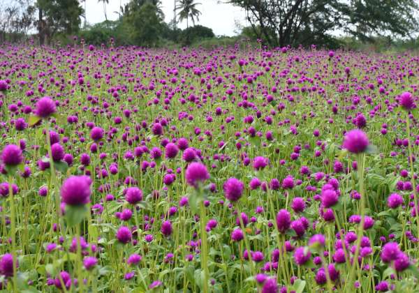திருநெல்வேலி மாவட்டம் அலவந்தான்குளம் பகுதியில் பயிரிடப்பட்டுள்ள செடிகளில் பூத்துக்குலுங்கும் வாடாமல்லி பூக்கள்.