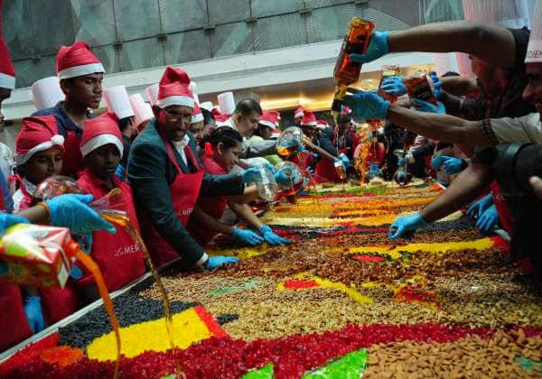 கோவை லீ மெரிடியன் ஹோட்டலில் கேக் மிக்சிங் திருவிழாவில் 300 கிலோ எடையிலான பிரம்மாண்ட பிளம் கேக் தயாரிக்கும் பணிகள் துவங்கின