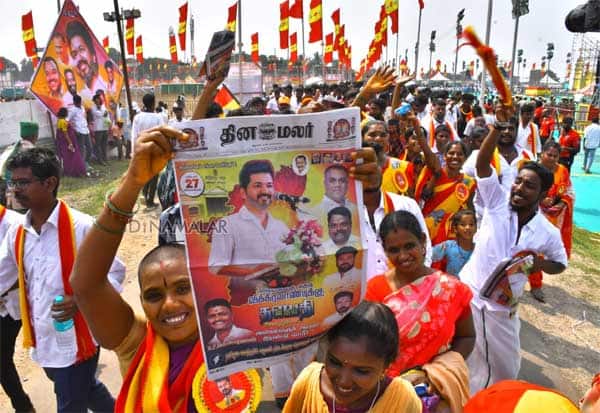 நடிகர் விஜய் துவக்கி உள்ள தமிழக வெற்றி கழக கட்சியின் மாநாடு இன்று விழுப்புரம் மாவட்டம் விக்கிரவாண்டியில் நடக்கிறது. இதற்கென தொண்டர்கள் பலர் குவிந்தனர்.