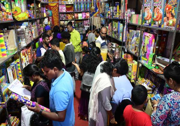 தீபாவளி பண்டிகை வருவதை முன்னிட்டு பண்டிகையை கொண்டாடுவதற்கான பட்டாசுகளை தீவுத்திடலில் அமைக்கப்பட்டுள்ள பட்டாசு கடைகளில் வாங்கும் மக்கள் கூட்டம்.
