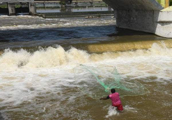 வைகையில் பொங்கி வரும் புது வெள்ளத்தில் துள்ளிக் குதிக்கும் மீன்களை அள்ளிச் செல்ல வலை வீசுகிறாரோ இவர். இடம் : மதுரை ஆழ்வார்புரம்.