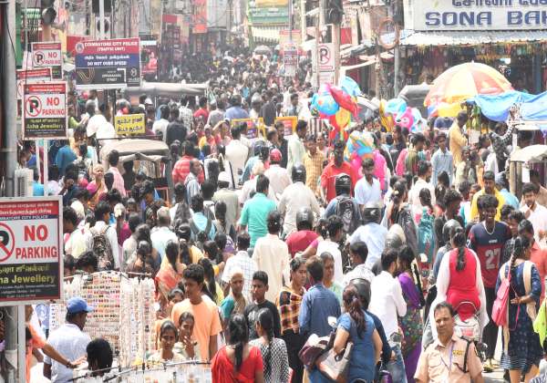 தீபாவளி பண்டிகையையொட்டி கோவை டவுன்ஹால் பகுதியில் ஷாப்பிங் செய்ய கூடிய மக்கள்.