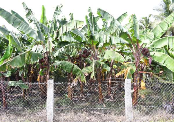 உடுமலை வடபூதனத்தில், விவசாயிகள் பயிரிட்டுள்ள செவ்வாழை மரத்தில் காய்கள் காய்த்துள்ளன.