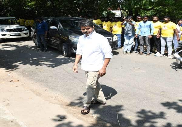 த.வெ.க முக்கிய நிர்வாகிகள் கூட்டத்திற்கு வருகை தந்த கட்சியின் தலைவர் விஜய்.இடம் : பனையூர்.