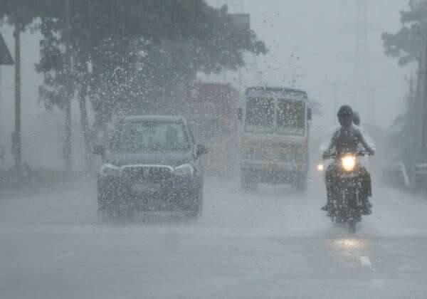 சென்னையில் பரவலாக மழை பெய்தது. இடம்: மாதவரம் விரைவு சாலை,