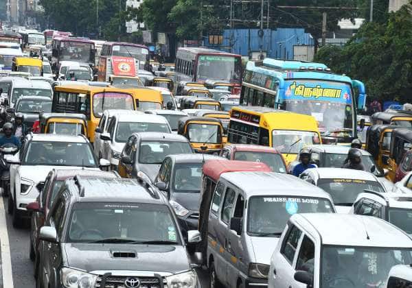 சென்னை அண்ணாசாலையில் போக்குவரத்து நெரிசலில் சிக்கி தவித்த வாகன ஓட்டிகள். இடம். ஸ்பென்சர் சிக்னல்.