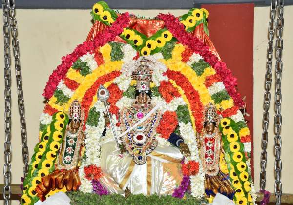 கந்த சஷ்டியை முன்னிட்டு திருப்பூர், அணைக்காடு மாகாளியம்மன் கோவிலில் ஊஞ்சல் உற்சவத்தில் சுப்பிரமணியர் வள்ளி, தெய்வானையுடன் திருக்கல்யாண கோலத்தில் பக்தர்களுக்கு அருள்பாலித்தனர்.