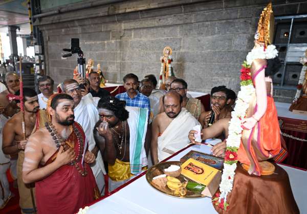 சென்னை வடபழனி ஆண்டவர் கோவிலுக்கு சிருங்கேரி இளைய சங்கராச்சாரியார் ஸ்ரீ விதுசேகர பாரதீ ஸ்வாமிகள் வருகை தந்தார், அவரை கோவில் தக்கார் வரவேற்றார்.
