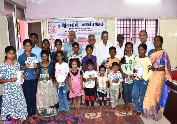 கடலூர் மஞ்சக்குப்பம் கிளை பிராமணர் சங்கம் சார்பில் குழந்தைகள் தின விழாவையொட்டி பல்வேறு போட்டிகளில் வென்ற மாணவர் மாணவிகளுக்கு மாநில செயலாளர் திருமலை பரிசு வழங்கினார்.