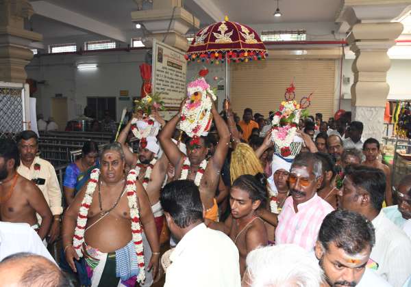 பொள்ளாச்சி அருகே ஆனைமலை மாசாணியம்மன் கோவிலில் பாலாலயம் செய்ய தீர்த்த குடம் எடுத்து வந்தனர்.