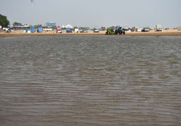 சென்னையில் சமீபத்தில் பெய்த மழையினால் மெரினா கடற்கரை பகுதியில் தேங்கியுள்ள நீர் துர்நாற்றம் வீசுவதோடு நோய் பரவும் அபாயம் உள்ளது.