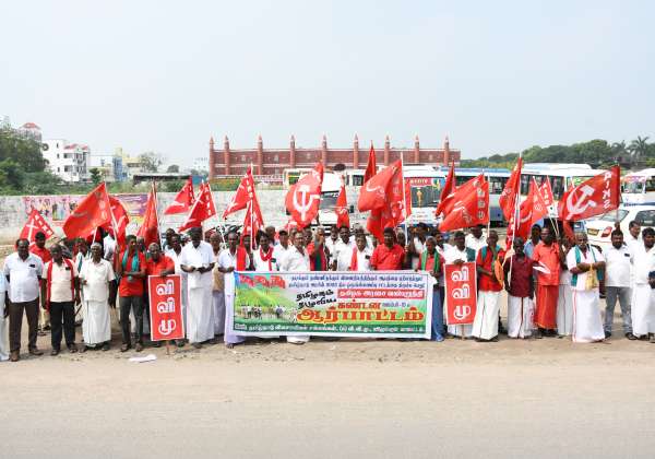 விழுப்புரம் நகராட்சி திடலில் நில ஒருங்கிணைப்பு சட்டத்தை திரும்பப் பெற வலியுறுத்தி விவசாயிகள் சங்கம் சார்பில் ஆர்ப்பாட்டம் நடந்தது.