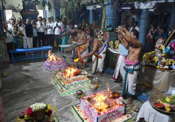 திண்டிவனம் லட்சுமி நரசிம்மர் கோவிலில் புனரமைக்க பாலாலயம் நடந்தது.