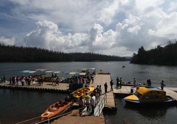 ஊட்டி அருகே பைகாரா ஏரியில், சுற்றுலா பயணிகள் படகு சவாரி சென்றனர்.