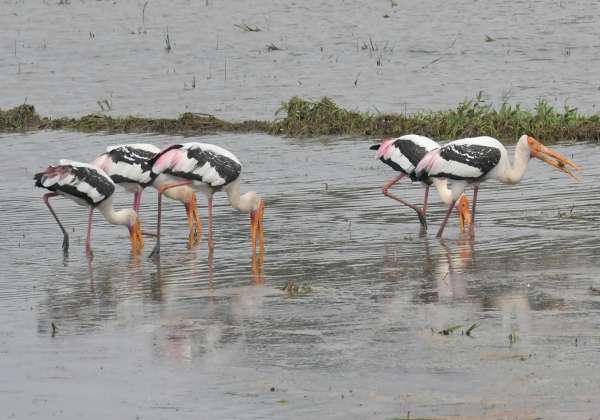 திருநெல்வேலி மாவட்டம் அருகன்குளம் பகுதியில் வயல்வெளிகளில் இரை தேடி குவிந்த பறவைகள்.