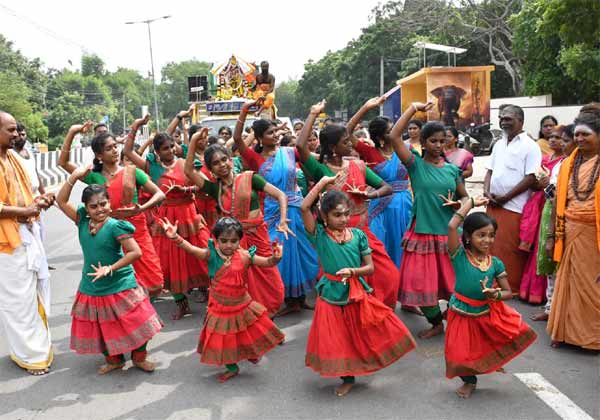 திருவண்ணாமலையில் புதுச்சேரியைச் சேர்ந்த பக்தர்கள் நடராஜர் சிலை உடன் பரதநாட்டியம் ஆடியபடி கிரிவலம் வந்தனர்.