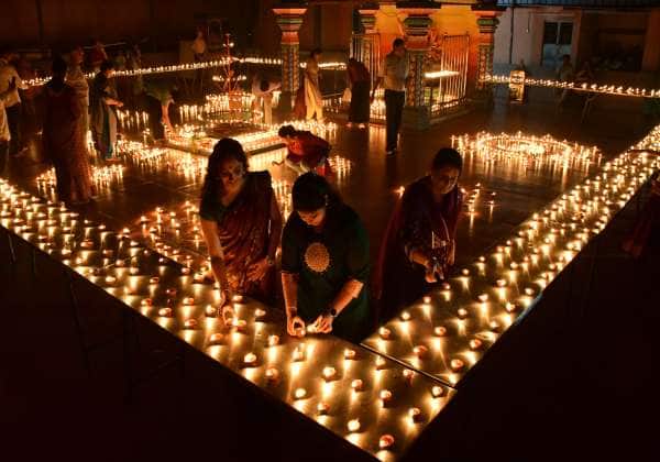கோவை ரேஸ்கோர்ஸ் சாரதாம்பாள் கோவிலில் நடந்த கார்த்திகை தீப உற்சவ விழாவில் 12000 கார்த்திகை விளக்குகள் தீப ஒளியில் ஜொலித்தன.