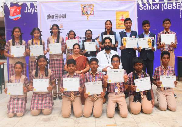 விருத்தாசலம் ஜெயப்பிரியா வித்யாலாயா சி.பி.எஸ்.இ. பள்ளியில் நடந்த தினமலர் பட்டம் இதழின் வினாடி வினா போட்டியில் பங்கேற்ற மாணவர்கள்.