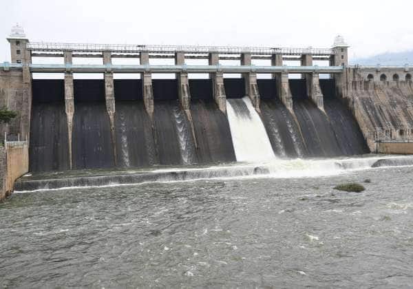 உடுமலை அமராவதி அணையின் நீர்மட்டம் முழு கொள்ளளவை அடைந்ததால் உபரி நீர் ஷட்டர் வழியாக திறந்து விடப்பட்டது.