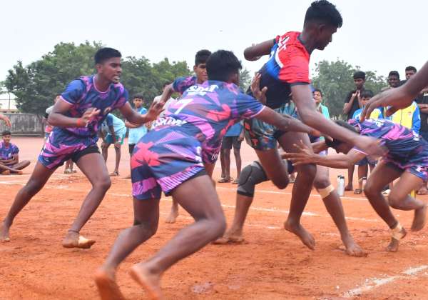 மாநில அளவிலான விடுதி மாணவர்களுக்கான கபடி போட்டியில் விழுப்புரம் அணியும் தேனீ அணியும் விளையாடினர். இடம்: சிவகங்கை மாவட்ட விளையாட்டு மைதானம்