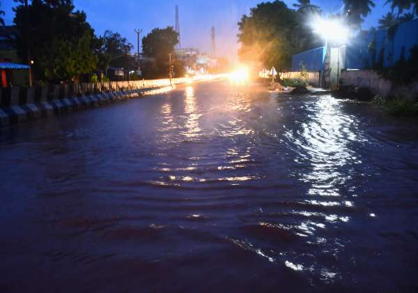 கிழக்கு கடற்கரை சாலை சின்ன முதலியார் சாவடியில் தேங்கி நிற்கும் மழை நீரால் வாகன ஓட்டிகள் அவதிக்குள்ளாகினர்.