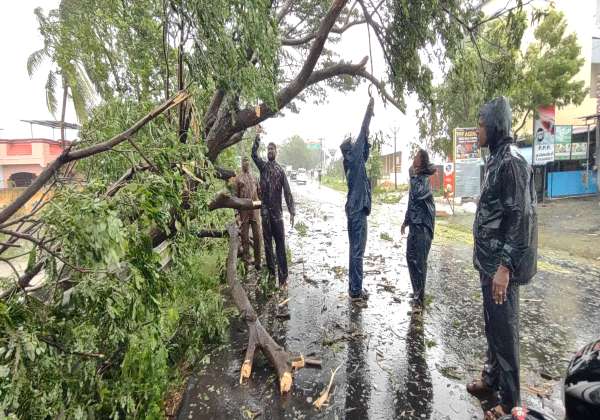 கடலூர்- புதுச்சேரி சாலையில் புயலில் சாய்ந்த மரங்களை உடனுக்குடன் அப்புறப்படுத்தும் பணி நடந்தது.