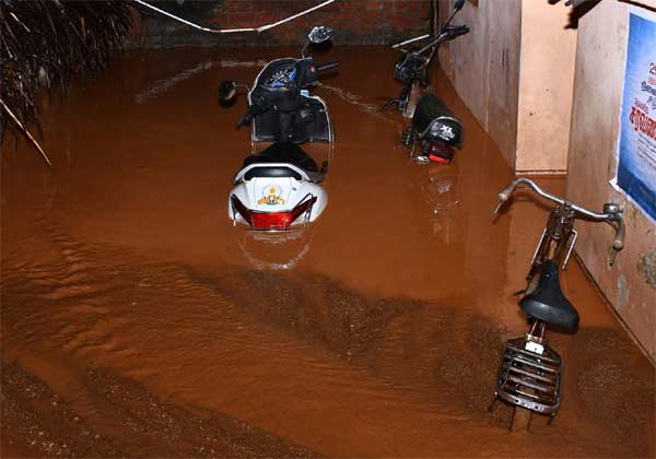 பெஞ்சல் புயல் காரணமாக திருவண்ணாமலை அண்ணாமலையார் மலையில் ஏற்பட்ட மண் சரிவில் வ.உ.சி., நகர் 11வது தெருவில் உள்ள வீடுகளின் வெளியே நிறுத்தி வைக்கப்பட்ட வாகனங்கள் மண்ணால் மூடப்பட்டுள்ளது.