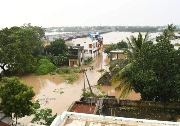 தென்பெண்ணை ஆற்றில் வெள்ளப்பெருக்கு ஏற்பட்டதால் கடலூர் கங்கணாங்குப்பம் பாபா நகரில் வெள்ள நீர் சூழ்ந்தது.
