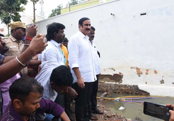 பெஞ்சல் புயலால் திண்டிவனம் நாகலாபுரம் ஆமா தரைப்பாலம் உடைந்த பகுதியை பா.ம.க., தலைவர் அன்புமணி பார்வையிட்டார்.