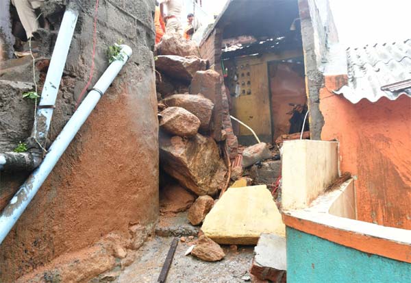பெஞ்சல் புயல் காரணமாக திருவண்ணாமலையில் பெய்த கன மழையினால் அண்ணாமலையார் மலையிலிருந்து மண் சரிவு ஏற்பட்டு வ.உ.சி நகர் 9வது தெருவில் வழியை மறைத்து உருண்டு வந்து பாறைகள்.