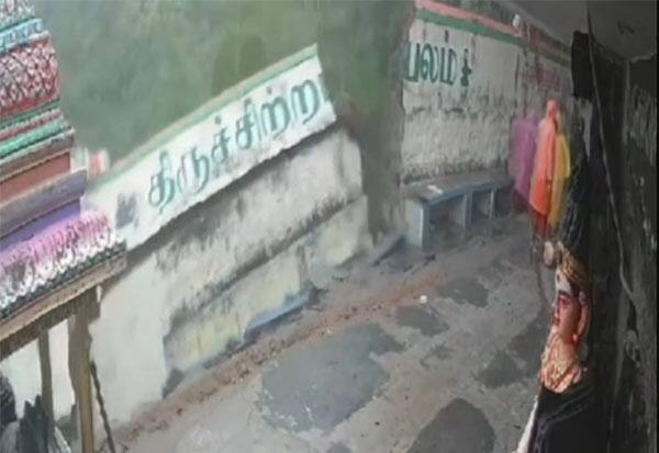 திருவண்ணாமலை, அண்ணாமலையார் மலையில் மேலே அமைந்துள்ள குகை நமச்சிவாய கோவில் தடுப்புச்சுவர் இடிந்து விழுந்தது.