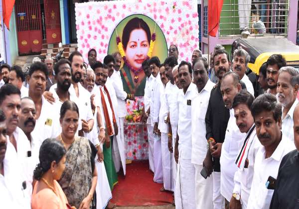 கடலூர் மஞ்சகுப்பத்தில் அ.தி.மு.க., கட்சி சார்பில் முன்னாள் முதல்வர் ஜெயலலிதா நினைவு நாளையொட்டி அவரது உருவ படத்திற்கு மலர் தூவி மரியாதை செலுத்தப்பட்டது.
