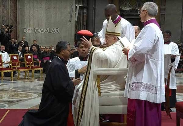 கத்தோலிக்க திருச்சபையின் கார்டினலாக கேரளாவை சேர்ந்த ஜேக்கப் கூவக்காடுவுக்கு வாடிகனில் போப் பிரான்ஸிஸ் பதவிப்பிரமாணம் செய்து வைத்தார். இந்த நிகழ்வுக்கு பிரதமர் மோடி வாழ்த்து தெரிவித்துள்ளார்.