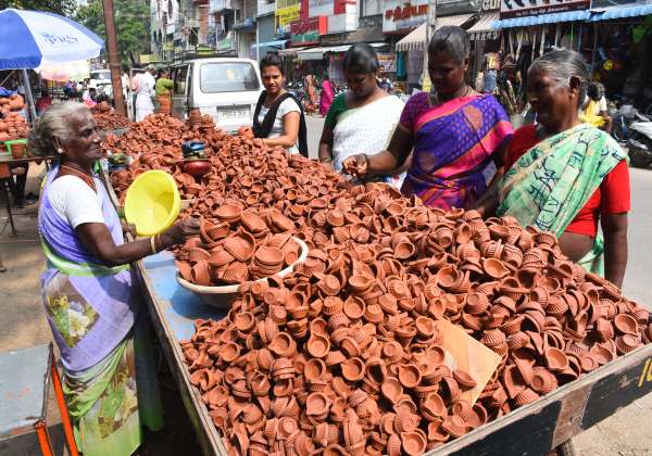 அகல் விற்பனை படுஜோர்; கார்த்திகை தீபத்தை ஒட்டி திண்டிவனம் நேரு வீதியில் அகல் விளக்கு விற்பனை ஜோராக நடந்து வருகிறது.
