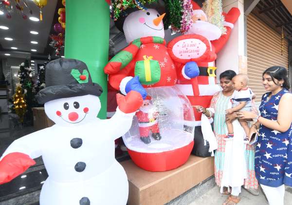 கிறிஸ்துமஸ் பண்டிகையையொட்டி சென்னை பிராட்வே பகுதியில் விற்பனைக்கு வந்துள்ள கிறிஸ்துமஸ் மரம் மற்றும் பொம்மைகளை ஆர்வமுடன் பார்வையிடும் பொதுமக்கள்.