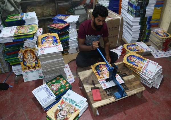 புதிய வருடம் பிறப்பதை முன்னிட்டு கோவை டவுன்ஹால் பகுதியில் காலண்டர் தயாரிக்கும் பணி நடந்து வருகிறது.