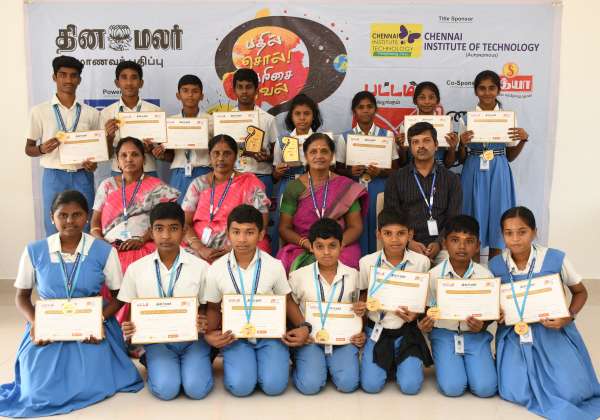 தினமலர் நாளிதழ் மாணவர் பதிப்பான பட்டம் இதழ் மற்றும் சென்னை இன்ஸ்டிடியூட் ஆப் டெக்னாலஜி, எஸ்.எஸ்.வி.எம்., கல்விக் குழுமம் இணைந்து வழங்கும் பதில் சொல் பரிசை வெல் வினாடி - வினா போட்டி கோவை அவிநாசி ரோடு, சித்ரா, ஸ்ரீமதி டி. பத்மாவதி அம்மாள் உயர்நிலைப் பள்ளியில் நடந்தது. இதில் பரிசு பெற்ற மாணவர்களுடன் (இடமிருந்து) கணித ஆசிரியர் அஞ்சுகபாரதி, தமிழ் ஆசிரியர் சுமதி, தலைமையாசிரியர் சாந்தகுமாரி, கணினி ஆசிரியர் சுரேஷ் உள்ளிட்டோர்.
