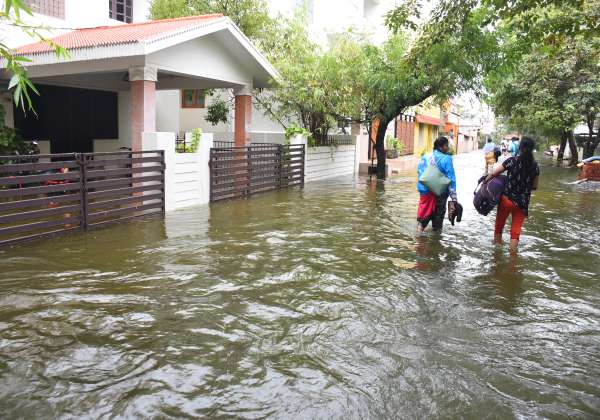 வீராங்குளம் உடைப்பு ஏற்பட்டு திண்டிவனம் காந்தி நகரில் மழை நீர் சாலையில் பெருக்கெடுத்து ஓடுவதால் வீடுகளில் இருந்து பொருட்களை எடுத்துக் கொண்டு வெளியேறும் மக்கள்.