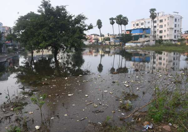 திருவள்ளூர் ராஜாதிபுரத்தில் மழை நீர் தேங்கி குளம் போல் காட்சி அளிக்கிறது.