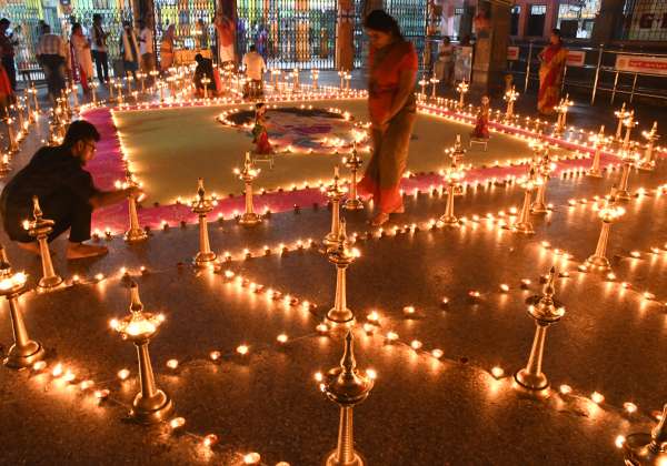 கார்த்திகை தீபா விழாவை முன்னிட்டு திண்டுக்கல் கோட்டைமாரியம்மன் கோயிலில் பக்தர்கள் விளக்கேற்றி வழிபட்டனர்.